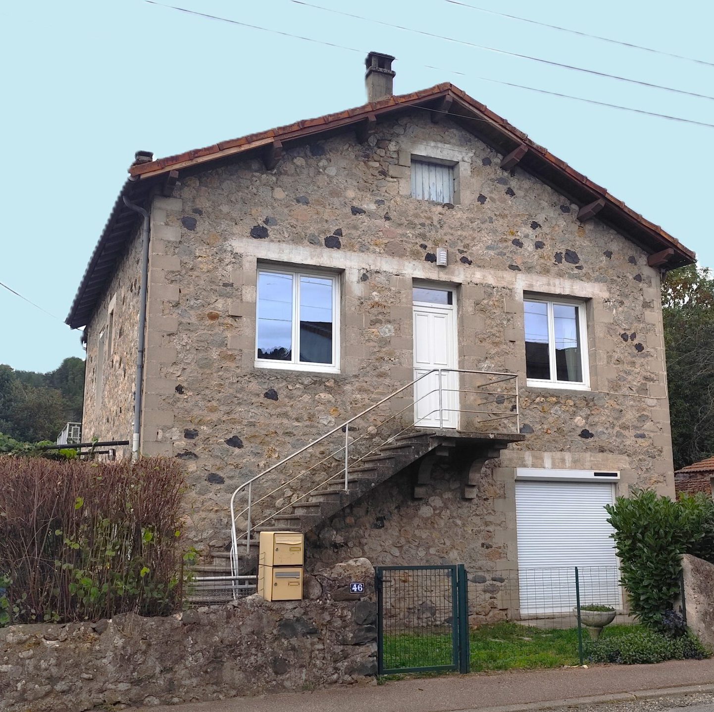 Een gerenoveerde stenen woning, gelegen aan een rustige weg, met een panoramisch uitzicht. Op de begane grond een kleine garage, een atelier en bureau. Op de etage (niveau tuin), een ruime woonkeuken, een woonkamer met toegang tot het overdekte terras en de tuin. Op de bovendverdieping, twee grote slaapkamers en nog een open ruimte. Badkamer met bad en douche en een apart toilte. Tuin 530m2. De huidige (Duitse) eigenaren hebben er meer dan 12 jaar lang, met veel plezier gewoond.